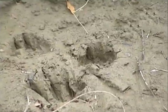 野生东北虎渡江后留下的脚?。ㄍ计丛赐纾?/p>