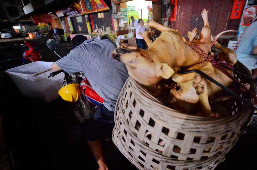 【玉林饭店老板:吃狗肉根本拦不住】原本拥挤的垌口菜市场人满为患,在狗肉摊位前,摊主们忙不过来,几乎每一个摊位都增加了一位专门收钱的人。记者在现场发现,狗肉销售得很快,早晨堆积如山的狗现在只剩下几只了,不时有骑摩托车的货主往摊位前送货。我家总共买了二十多只狗,准备了三四十桌狗肉,现在都已经切好,就等着晚上开饭了。”刘老板是一家饭店的老板,他说因为公务员被禁止外出吃狗肉,今年来饭店吃狗肉的市民减少了。我一个公务员朋友昨晚买了十斤狗肉,回家煮了,不敢出来吃。过节这事阻挡不了的。”刘老板说。图片来源:CFP