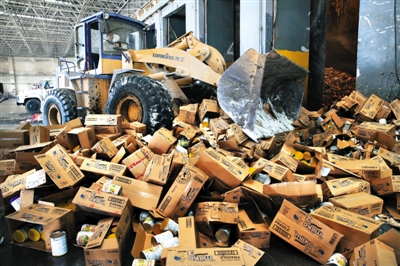 2014年4月2日,北京一垃圾焚烧厂,涉嫌涂改罐底保质期的进口婴幼儿配方乳粉被销毁。新京报记者 尹亚飞 摄