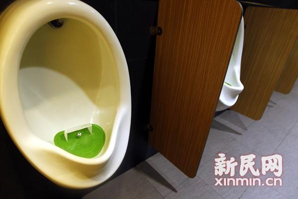 上海一商场男厕小便池里装球门 保洁员:好打扫