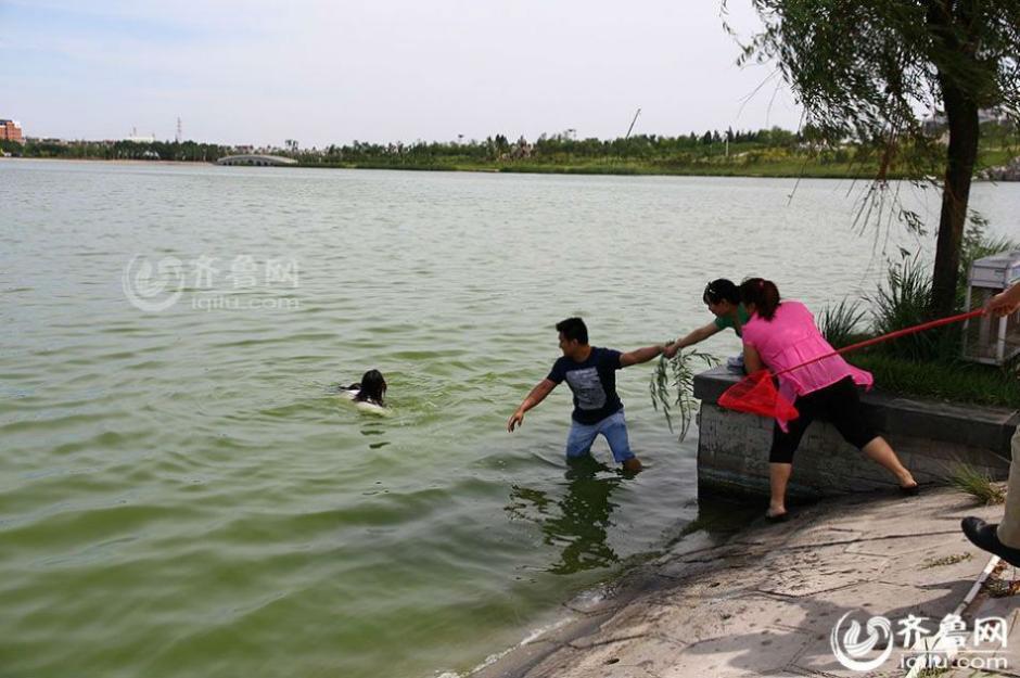 实拍山东东营女孩跳水救人全程 上岸后悄然离去(图)