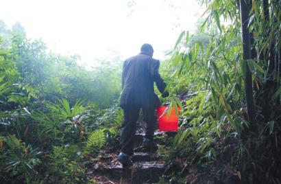 因为学校没有水源,郑老师或其妻子每天都要提着小桶到距离约500米的老井提水 。
