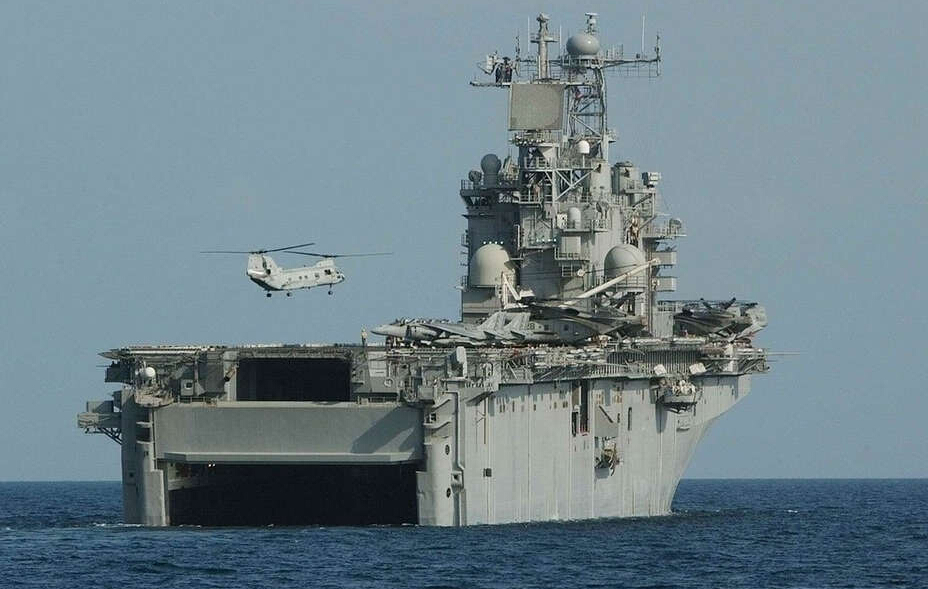 佩里琉号是塔拉瓦级通用两栖攻击舰,该级两栖舰上世纪从70年代中期起开始建造,它配载登陆艇、两栖车辆、直升机等,兼有两栖攻击舰和运输舰的作战能力。图为塔拉瓦级两栖攻击舰。