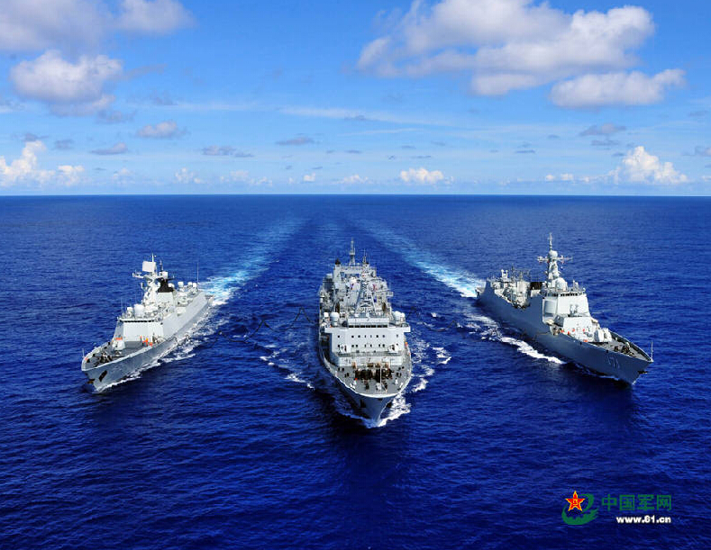 此外,中国海军还派遣补给舰和医院船两艘辅助作战舰艇参演。千岛湖号补给舰是中国海军第一种拥有真正现代化构型的综合补给舰,该舰舰长171.4米、舰宽24.8米、吃水9米、满载排水量2.3万吨,航速约19节。其可以在公海上执行航行补给任务,向舰艇输送燃料和干货补给。图为参加环太军演的千岛湖号为海口舰、岳阳舰实施补给。图片来源:中国军网