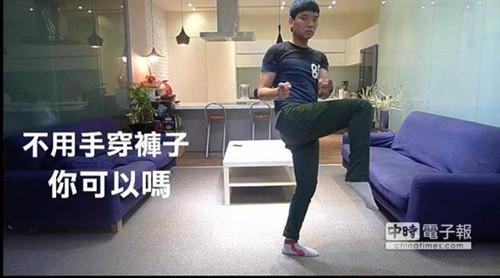 关键词:空手穿裤 顶尖对决之穿裤子篇 台湾网友示范不用手穿裤子