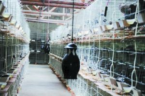 挂在肉鸽场的灭蚊器。人民网照片