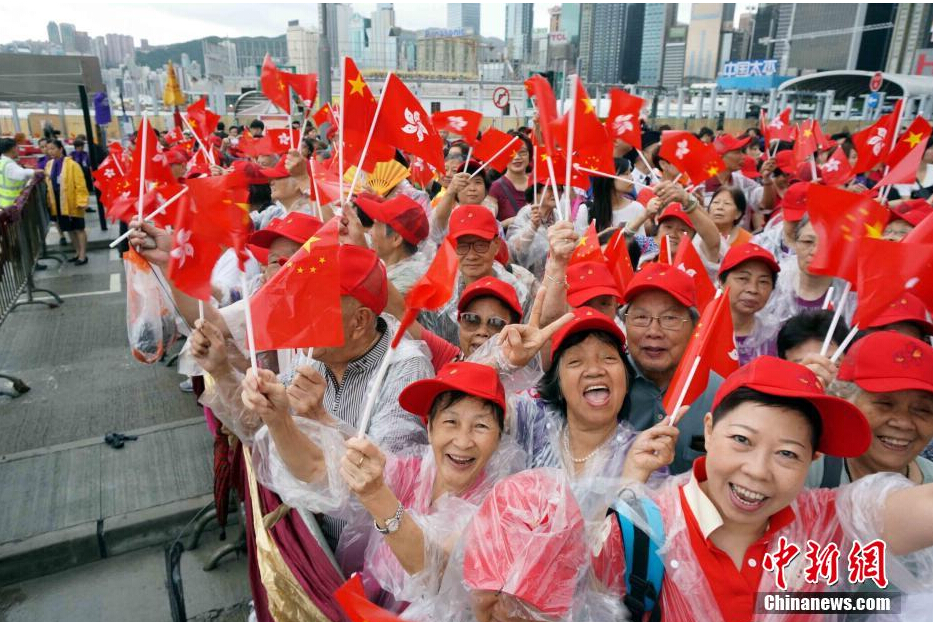 7月1日上午,香港举行升旗仪式庆祝特区成立十七周年。升旗仪式在香港金紫荆广场举行,约2500名香港各界人士出席仪式。中新社发 洪少葵 摄