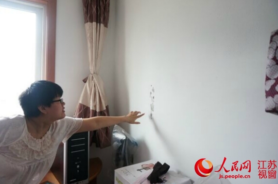 206幢9楼住户李女士说,她家是2013年住进来的,今年5月份发现墙面渗水,渗水后墙面发泡、发霉。当时家里装修的时候墙面就已经做过防水,没想到水还是渗进来了,肯定是施工时偷工减料导致房屋质量问题,希望相关单位尽快解决。