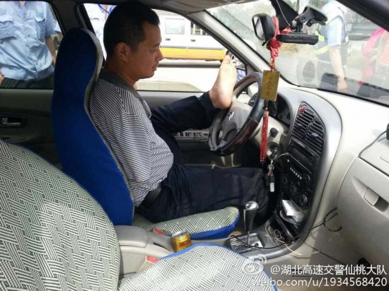湖北仙桃"无臂哥"双脚无证驾车上高速被查(组图)