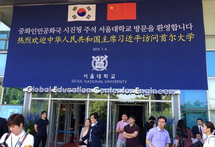 正在韩国进行国事访问的中国国家主席习近平将于今天上午访问首尔大学并发表演讲。一大早,发表演讲的会场外就聚集了大批前来出席演讲的师生代表及韩国各界人士。