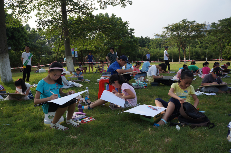选手们在草地上作画