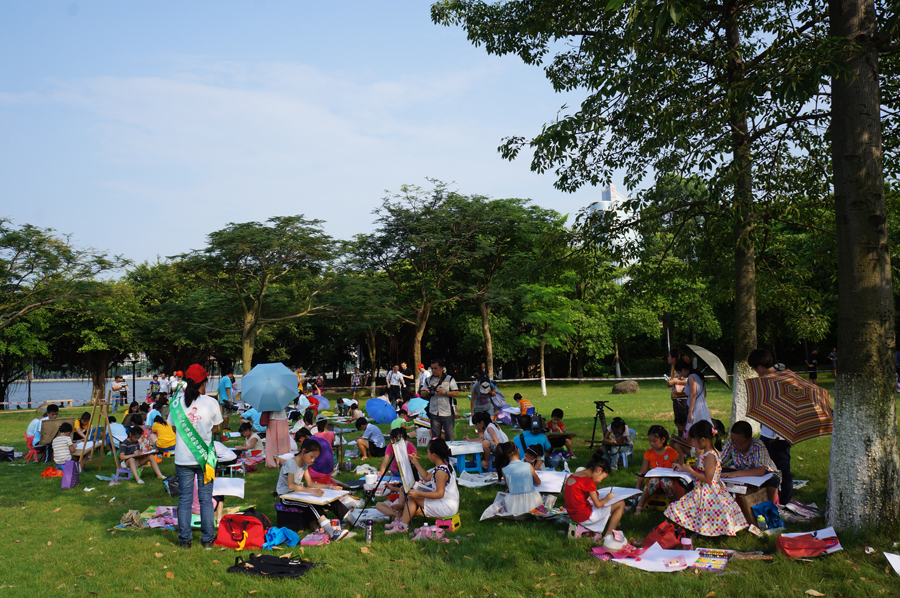 选手们在草地上作画