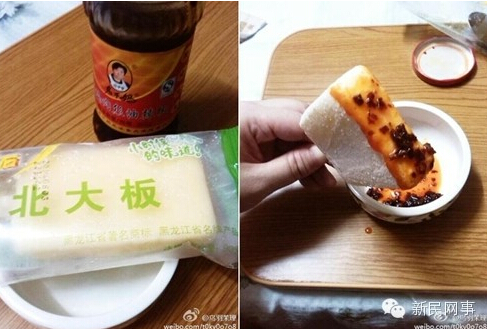 有网友还贴出了自己的亲自试验——@鸟羽茉理微博达人:雪糕+老干妈实验报告:现成材料东北大板和老干妈干煸肉丝油辣椒,大板太大只能舀一勺出来沾,辣油接触冰很快就会凝固,味道……确实不难吃啊,雪糕够冰所以一点不辣,甜的奶油味加一点点咸味的辣子还蛮搭的……
