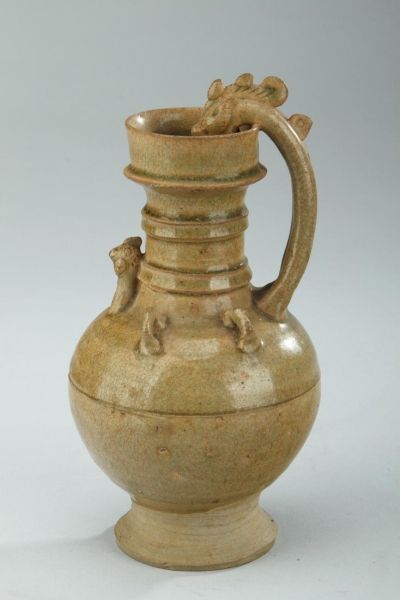 隋·湘阴窑青釉鸡首龙柄壶