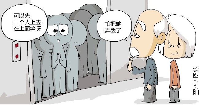 电梯只能上一人老夫妻为啥同退出?“我怕把她弄丢了”
