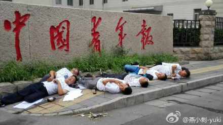 关键词:中青报门前 7人服液体倒地