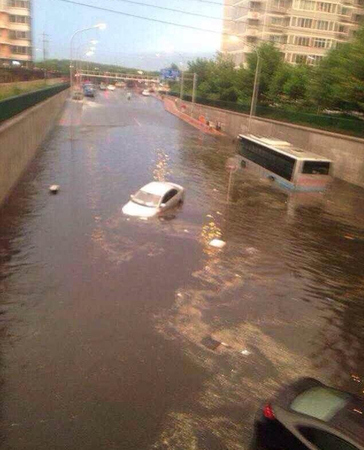 北京暴雨桥下积水2米18辆车被淹 车主弃车逃命