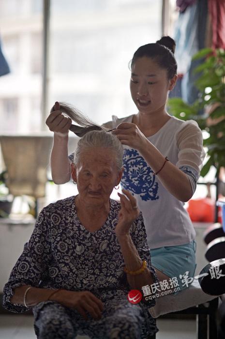 90后女孩带88岁外婆上班 寸步不离(组图)