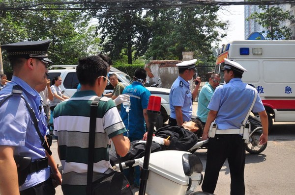 今年45岁的河南信阳男子郭伟,在郑州打工20年买不起房子,也难租到廉价的房子而愧对妻子和家人,患上严重的抑郁症,6天没有进食,16日清晨在顺河路金水河边割腕自杀,后被市民发现,民警医护人员将其送往黄河医院救治。图为郭伟割腕后被救。 该事件在全国引起很大轰动,很多读者和网友对郭伟的行为表示遗憾,同时也给予鼓励,一些市民还到医院看望他,并送去2000多元捐款,他深受感动,对相濡以沫20多年是妻子叶女士承诺一定要好好活下去。 可没曾想,就在4天后的19日中午,他乘妻子外出给他买烟时,偷偷上到该院11楼,翻越护栏,纵身跳下,当场死亡。 21日中午,记者赶到事发地,该院保安唐先生告诉记者,他当时就在郭伟掉落处10几米的地方,突然听到“轰”的一声巨响,他赶紧扭头一看,吓傻了,只见玻璃四处飞溅,灰尘荡起,一名男子屁股撅起,脑浆迸裂,一动不动躺在地上,一辆黑色汽车的右侧被砸扁,再抬头一看,20毫米厚的玻璃破碎,支撑玻璃的铁架子被砸的七零八散,他赶紧叫了急救人员,急救人员赶到现场一看,该男子已经气绝身亡,经过辨认,该男子正是5天前割腕自杀被救的郭伟。 19日中午,郭伟趁妻子外出给他买烟时,偷偷上到该院11楼,翻越护栏,纵身跳下,当场死亡。 |