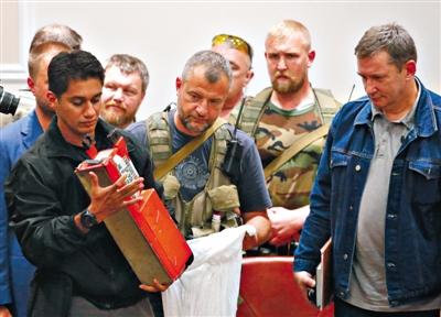 22日,乌克兰顿涅茨克,乌克兰民间武装将MH17的两个黑匣子移交给马方调查组。马方调查人员称,黑匣子“只有轻微损伤,基本完整无缺”。
