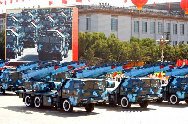 资料图:10月1日,首都各界庆祝中华人民共和国成立60周年大会在北京举行。这是红-12地空导弹方队通过天安门广场。新华社记者李晓果摄