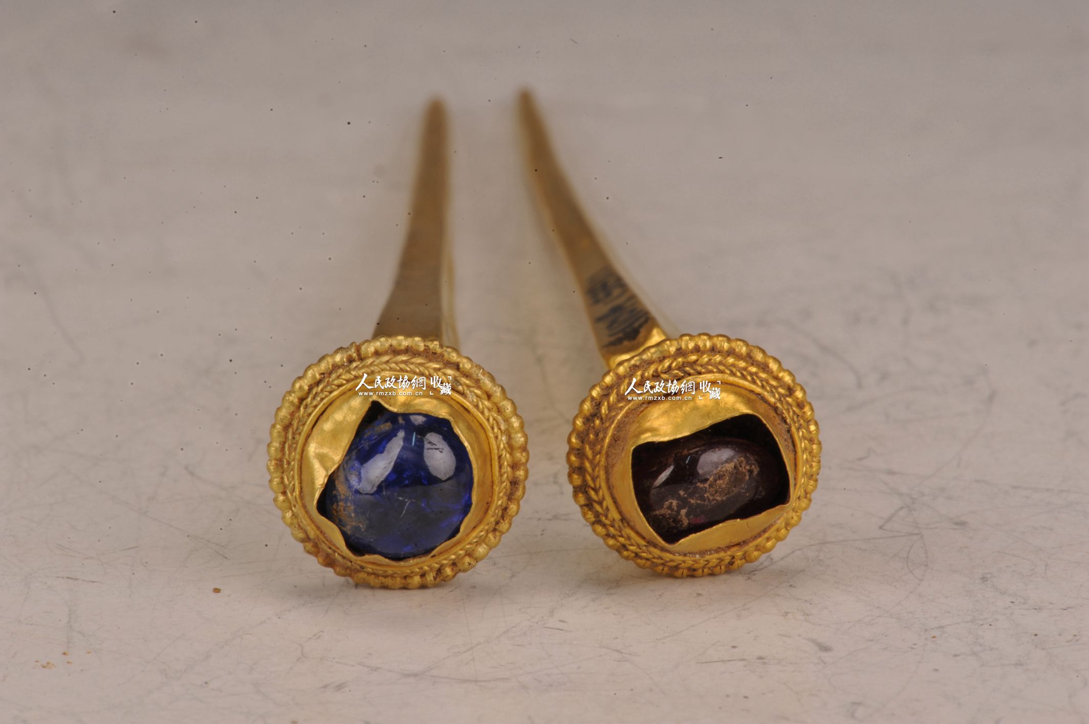 嵌红蓝宝石金簪