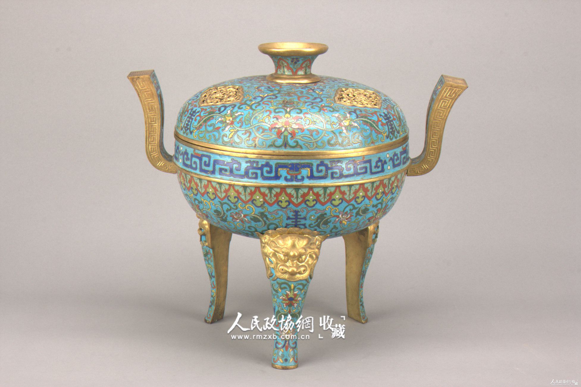 铜鎏金掐丝珐琅三足炉