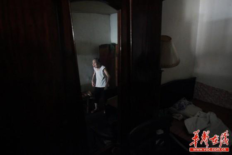 幽暗的房间,斑驳的光线透入,王仲莲老人依靠着意志力肩负着一个母亲的责任。