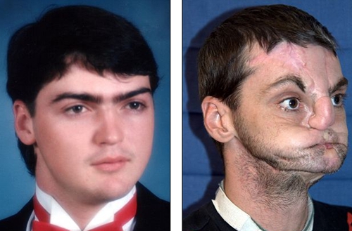 受伤后,诺里斯接受了几十次整容手术,但最后结果仍然很不理想。医生告诉他,如想恢复相对正常的面容,他只剩下换脸一条路了。不过,换脸术后,患者需终身服用抗排斥药物,这将造成其免疫力低下,很容易因普通的感染而丧生。