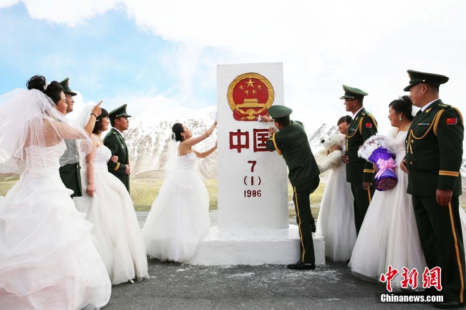 关键词:新疆边防官兵界碑边举行婚礼 中巴边界7号界碑 集体婚礼