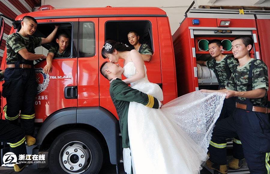 宁波消防战士拍“特殊婚纱照”(组图)