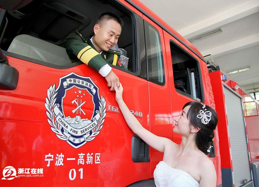 关键词:宁波消防战士拍“特殊婚纱照” 消防战士婚纱照