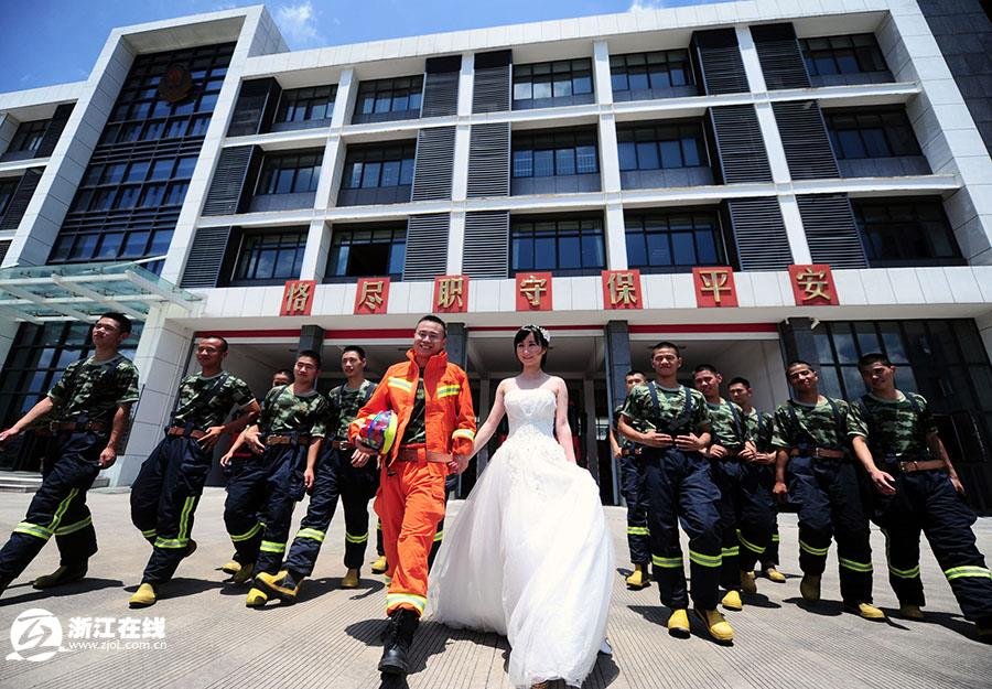宁波消防战士拍“特殊婚纱照”