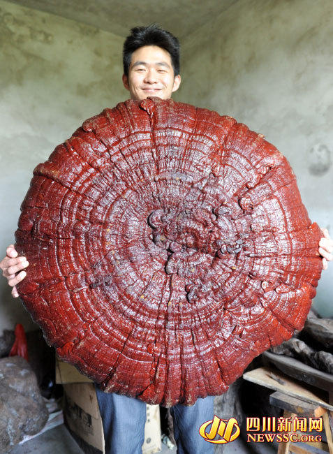 四川南充现巨型灵芝 状如大伞直径近一米(图)