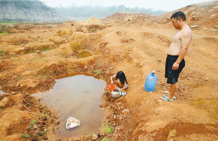 7月30日,大河报记者奔赴严重干旱的平顶山市宝丰县,看到旱情如同烈火,抗旱十万火急。父女俩,在已经枯竭的上李庄水库库底取水,这里离他们的家两公里。 记者 李红汛 实习生 余文龙 文 记者 平伟 实习生 高阳 摄影 图片来源:大河网