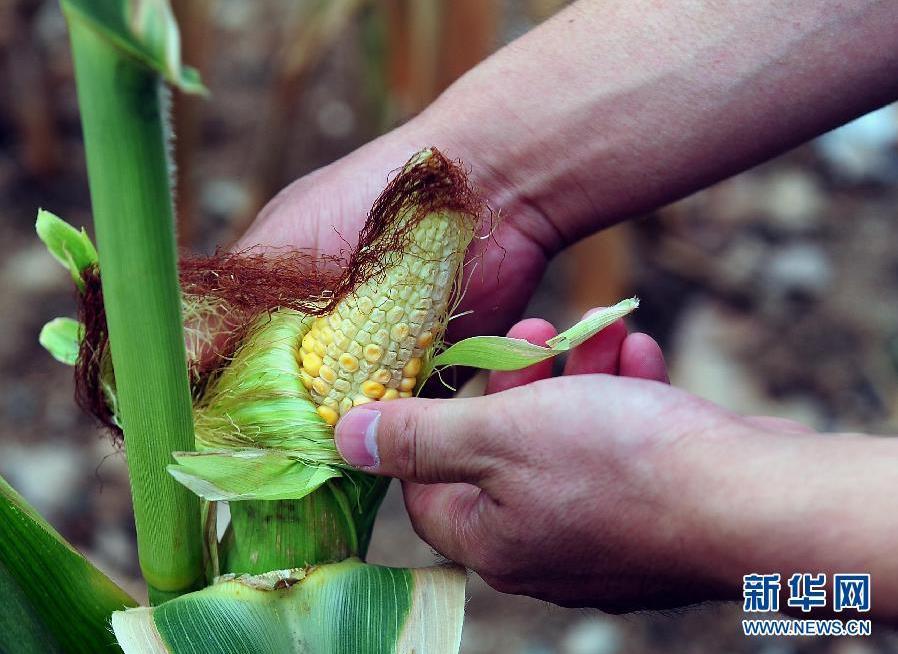 7月30日,在河南嵩县城关镇一块旱情严重的玉米地里,一位农民掰开一穗玉米观看籽粒的生长状况。自今年5月中旬以来,持续的干旱天气造成河南省西部山区农作物灾情严重。在地处伏牛山深处的嵩县,全县秋玉米播种面积28万亩,受灾面积接近65%,其中重旱3万亩,成灾15万亩。此外,红薯、棉花、烟叶等秋季作物也分别不同程度遭灾。目前,全县正全力以赴,抗旱保苗,修复水利设施,购置抗旱物资,力争让有限的水资源发挥最大的抗旱效益。新华社记者 王颂 摄 图片来源:新华网