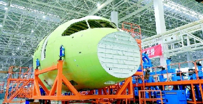 国产C919大型客机机头部段下线 订单已达400架