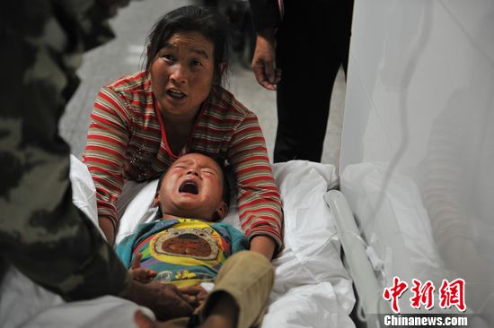 8月4日,在地震中受伤的孩子在医院接受救治。3日云南省鲁甸县遭遇6.5级强震。 任东 摄