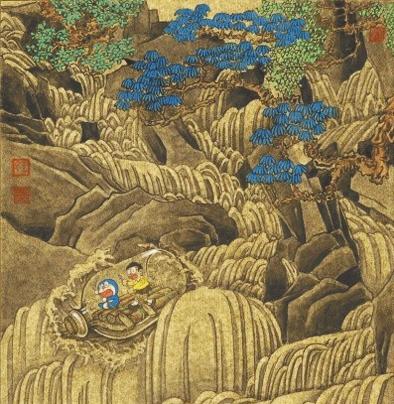 多啦A梦和大雄“穿越”古画。网络截图