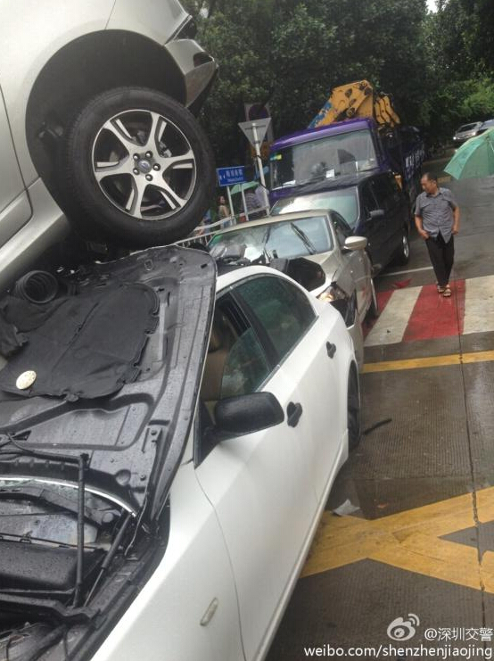 深圳一大货车刹车失灵,6车相撞“叠罗汉”。