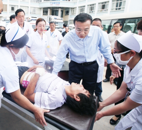 8月5日一大早,中共中央政治局常委、国务院总理李克强到云南鲁甸县人民医院,看望这里收治的地震伤员,慰问医护人员。