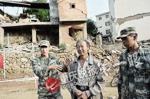 阅读提示:余震中废墟倒下来,3名解放军扑在老人身上,用身体挡住砸落的木头。3名战士不同程度受伤,老人毫发未伤。昨日,老人拦下解放军找恩人。