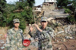 昨上午,重庆晚报记者跟随14集团军某部战士去搬运救灾物资。路过一处帐篷时,被一个60多岁当地老人拦下。他凑近个头较高的一名战士问:“那天救我的几名战士怎么样了?”老人指了指帐篷侧后方的一片废墟。“什么时候?”高个战士话音未落,老人就确定地说:“就是你们,口音我听出来了。”