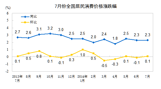 统计局:7月份全国居民消费价格总水平同比涨2.3%