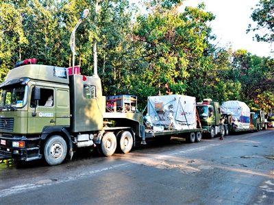 昨日,飞行试验器车队在运输途中。新华社发