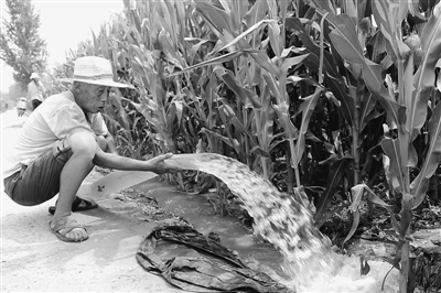 8月12日,河南省内黄县城关镇农民在为玉米浇水。连日来,该县农业部门积极组织广大群众抗旱保秋,力争秋粮取得好收成。
