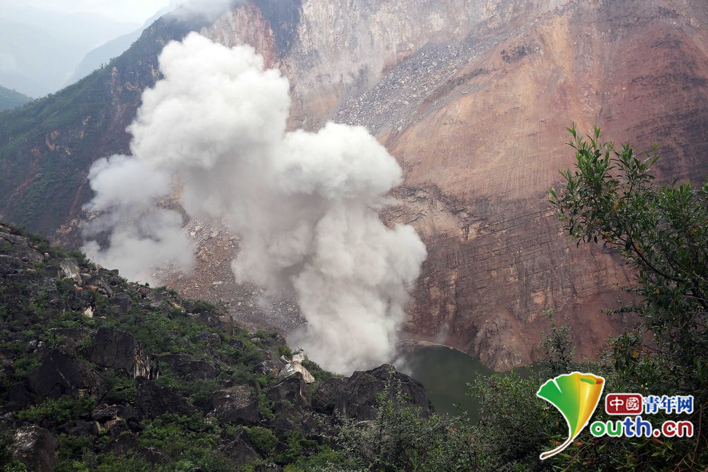 2014年8月12日,鲁甸“8·03”地震导致形成的牛栏江红石岩堰塞湖泄流槽爆破开挖,将开始泄洪,消除了严重威胁上游人民群众生命财产安全的隐患。