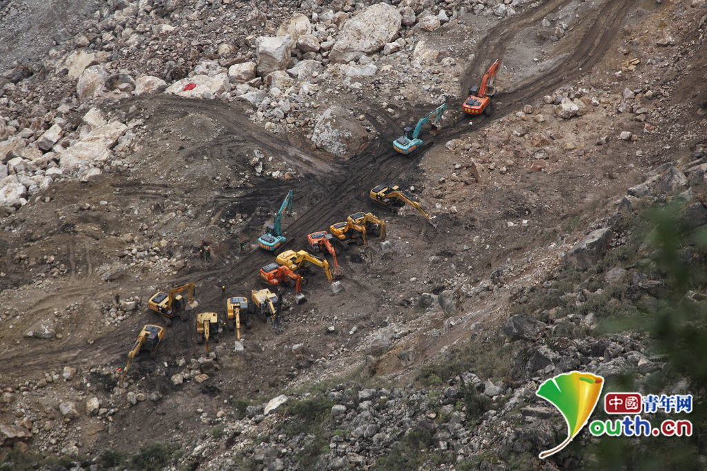 云南鲁甸牛栏江红石岩堰塞湖泄流槽挖掘完成