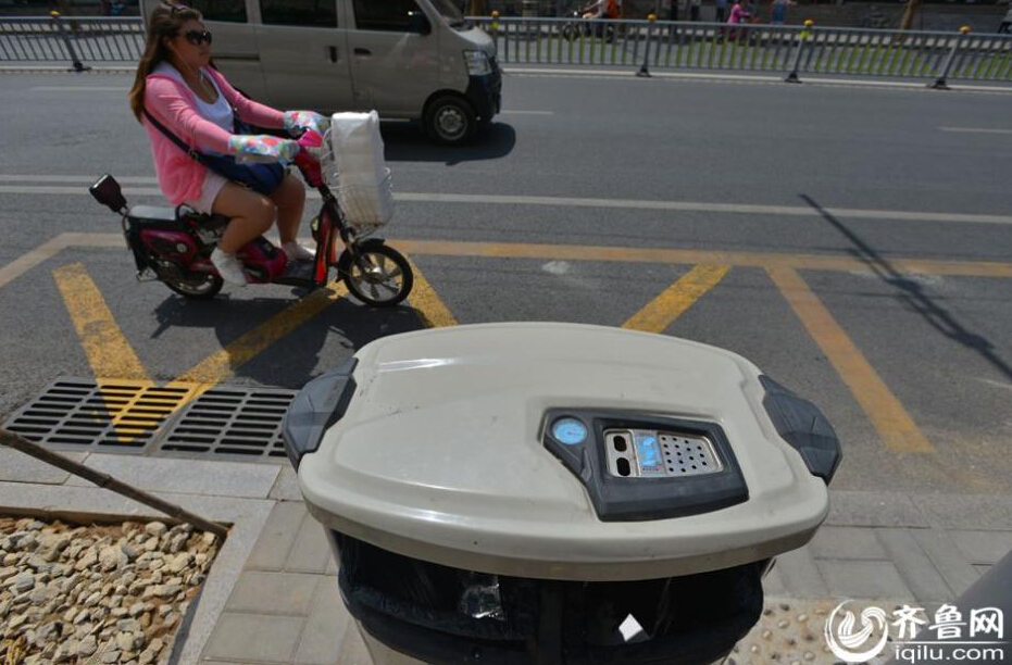 12日上午11时,记者在济南和平路上看到,崭新的垃圾箱安装在道路两侧。温度计也非常显眼。齐鲁网记者 于鹏 图片来源:齐鲁网