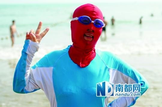 事实上,青岛大妈设计的尼龙材质、只露眼睛鼻子和嘴的“防晒神器”,2012年即走红网络,不仅入选了《时代》当年最令人吃惊照片,还在英文世界获得了一个专有名号———Facekini,翻译就是“脸基尼”。